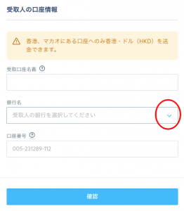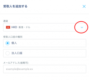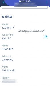 私は、HKDはに両替して送金したいと思ったので、通貨をHKDにしています。