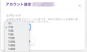 口座開設の一番はじめにレバレッジの選択画面があって、